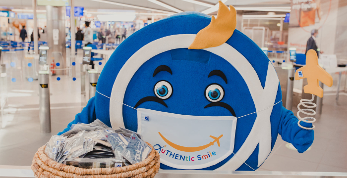 Προσέφερε σε όλους το συλλεκτικό επετειακό pin του Αεροδρομίου και μια καρτ ποστάλ με μηνύματα αγάπης της Αθήνας.
