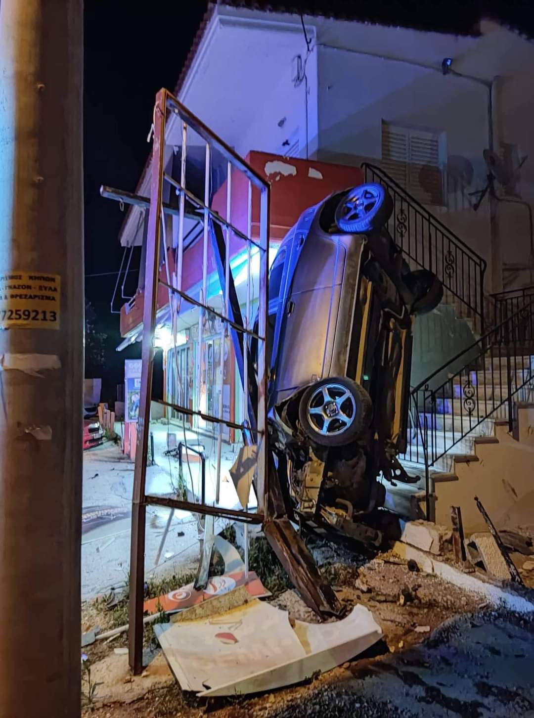 Ο οδηγός του οχήματος για άγνωστο λόγο έχασε το έλεγχο του ΙΧ του με αποτέλεσμα να καταλήξει στην είσοδο καταστήματος.