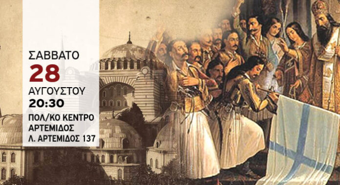Το Σάββατο, 28 Αυγούστου, στις 20:30, στο Πολιτιστικό Κέντρο Αρτέμιδος (Λ. Αρτέμιδος 137) θα έχουμε την ευκαιρία να απολαύσουμε τη μαθητική θεατρική παράσταση του 1ου Δημοτικού Σχολείου Αρτέμιδος “Από την Αγία Σοφία στην Αγία Λαύρα, Ιστορίες του ’21”.
