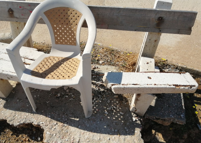 Οι εικόνες προκαλούν θλίψη, αν και οι άνθρωποι που σκέφτηκαν να βάλουν τις καρέκλες μεταξύ του διαλυμένου καθίσματος, σίγουρα αγαπάνε την περιοχή και προπάντων την υπέροχη θέα.