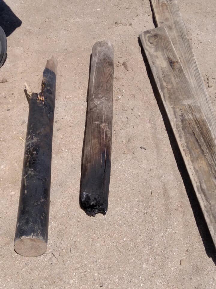 Σπασμένες ομπρέλες, κατεστραμμένες και κάποιες από αυτές καμένες συνθέτουν το σκηνικό της ντροπής στο σημείο.