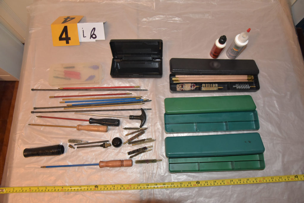 Διόπτρα νυκτερινής σκόπευσης, σκοπευτικό πυροβόλου όπλου, τέσσερις χειροβομβίδες δακρυγόνου CS, τρεις πυροδοτικοί μηχανισμοί χειροβομβίδας, τέσσερα σώματα χειροβομβίδας, δύο μοχλοί όπλισης χειροβομβίδας, δύο τεμάχια ζελατινοδυναμίτιδα, έξι κοινοί, εννέα ηλεκτρικοί και δύο αυτοσχέδιοι ηλεκτρικοί πυροκροτητές.