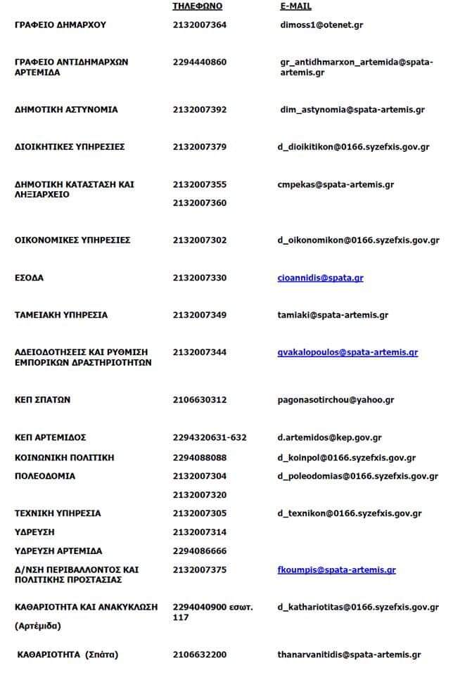 Από την Παρασκευή 13 Μαρτίου και μέχρι νεωτέρας οι υπηρεσίες του Δήμου Σπάτων – Αρτέμιδας θα λειτουργούν χωρίς την προσέλευση κοινού.
