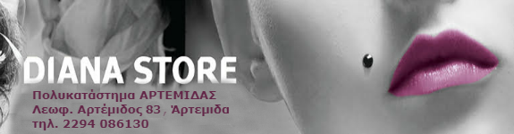 Στο Diana Store, επί της Λεωφόρου Αρτέμιδος 83 στην Αρτέμιδα, θα βρείτε εκτός από μοναδικά μαρτάκια, με ματάκια, κονκάρδες και χελιδόνια, επώνυμα καλλυντικά, είδη ομορφιάς, δώρα, κοσμήματα, είδη καπνιστών, αξεσουάρ, είδη κομμωτικής και παιχνίδια για τους μικρούς μας φίλους!