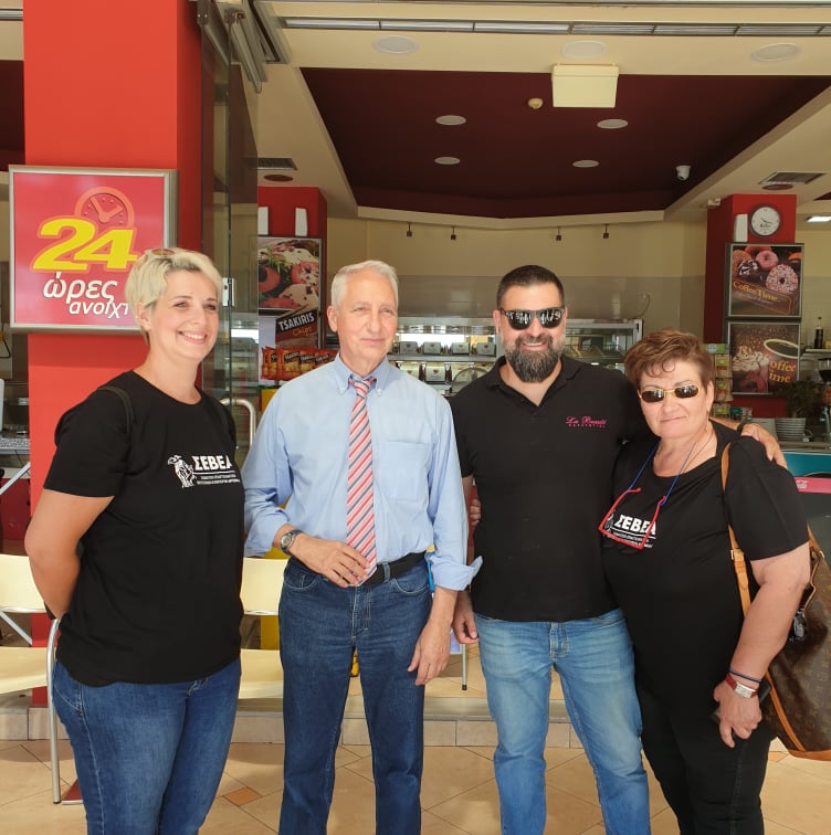 Η ομάδα του Ε.Ε.Α με τη συμμετοχή του Σωματείου “Ένωση ΕπαγγελματοΒιοτεχνών Εμπόρων Αρτέμιδας” και παρουσία του Αντιπεριφερειάρχη Ανατολικής Αττικής Αθανάσιου Αυγερινού συναντήθηκε νωρίς το πρωί σε καφέ στο κέντρο και μετά από μεταξύ τους συζήτηση ξεκίνησαν τη διανομή μασκών και αντισηπτικών.