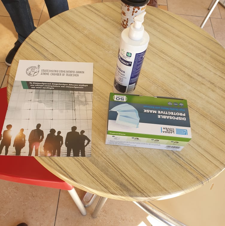 Η πρωτοβουλία του Επαγγελματικού Επιμελητηρίου Αθηνών να μοιράσει 100.000 μάσκες και αντισηπτικά σε επιχειρήσεις της Αττικής συνεχίστηκε σήμερα με τη διανομή υγειονομικού υλικού στην Αρτέμιδα.