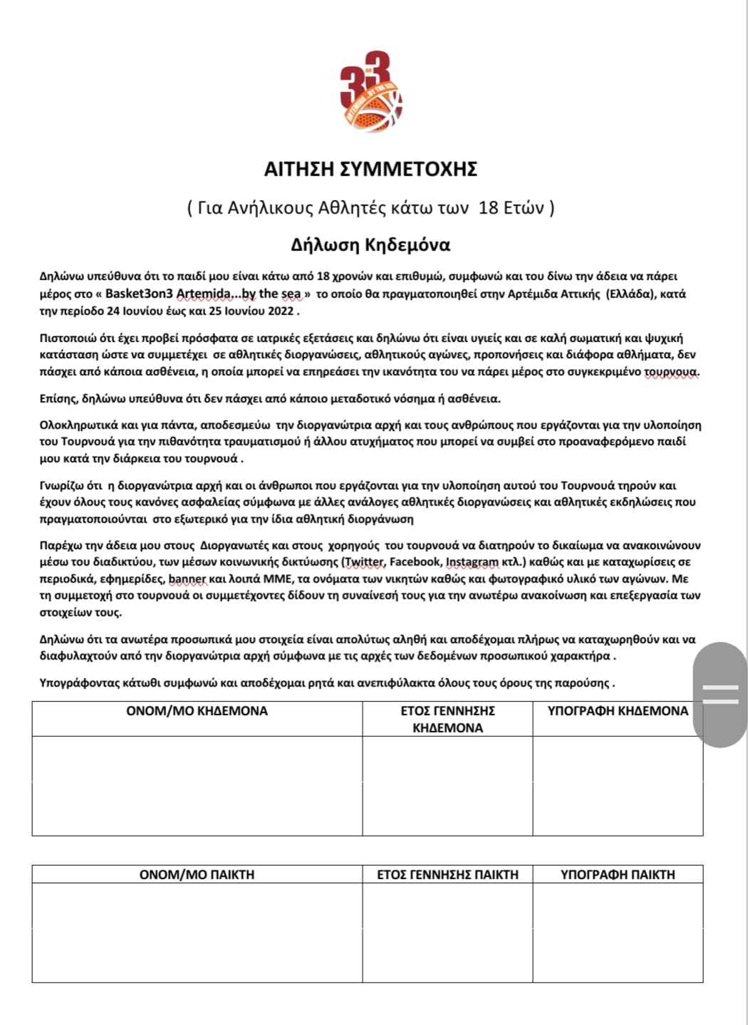 Συμπληρώστε τα 4 έγγραφα συμμετοχής και στείλτε τα στο athlspa1@yahoo.gr για να εγγραφείτε εσείς και η ομάδα σας!