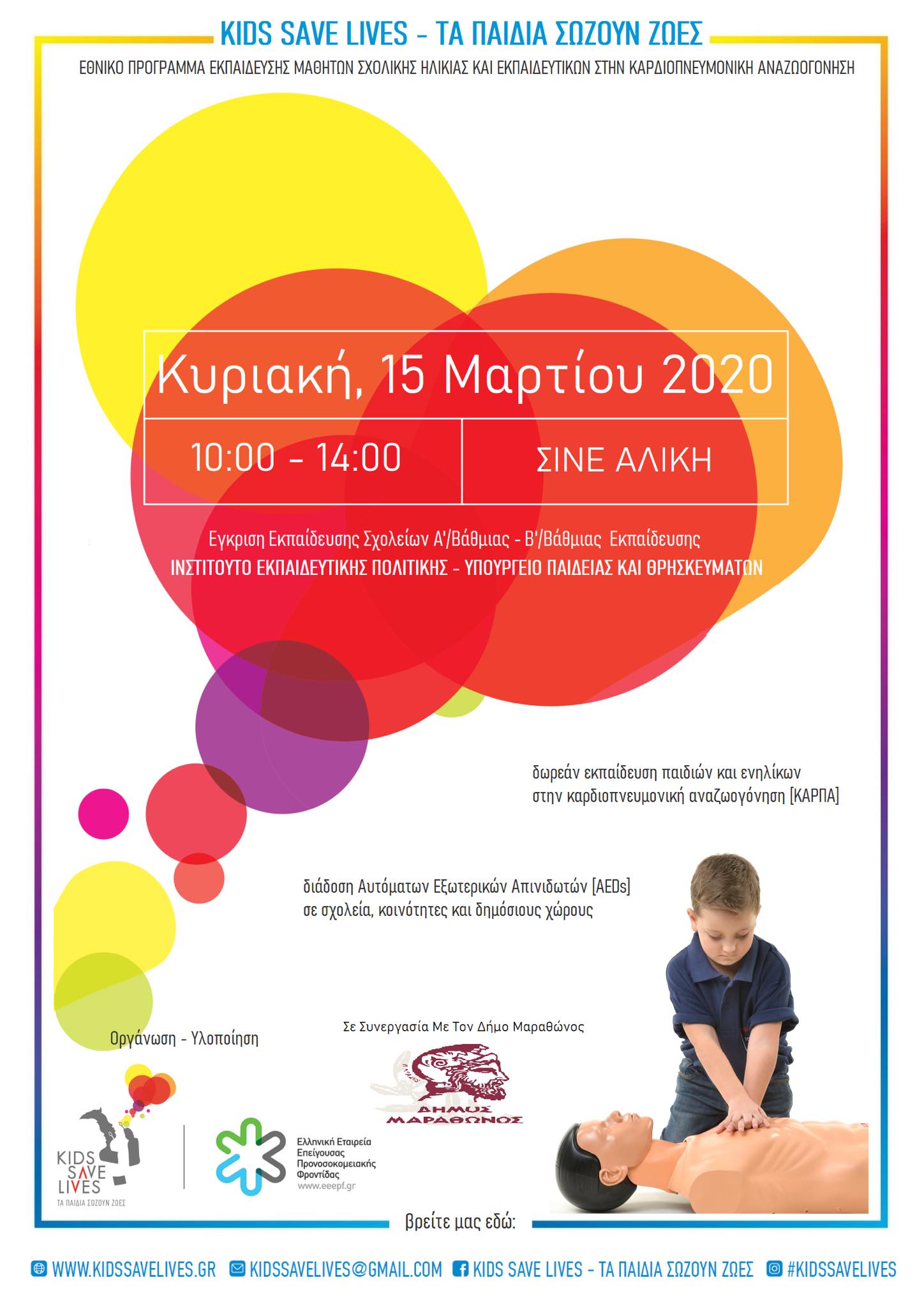 Την Κυριακή 15 Μαρτίου 2020 και ώρα 10:00 π.μ. στον Δημοτικό Κινηματογράφο ΣΙΝΕ ΑΛΙΚΗ στο Πολιτιστικό & Αθλητικό Πάρκο Νέας Μάκρης, θα πραγματοποιηθεί Εκπαιδευτικό Σεμινάριο από την Ελληνική Εταιρεία Επείγουσας Προνοσοκομειακής Φροντίδας για παιδιά και ενήλικες όπου θα διδαχτούν οι βασικές δεξιότητες για τη διάσωση μιας ζωής.