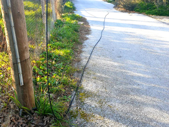 Ευτυχές παραμένει το γεγονός ότι δεν έχει συμβεί ατύχημα μέχρι τώρα, αφού το καλώδιο βρίσκεται καταμεσής του δρόμου και στο σημείο υπάρχει συχνή διέλευση αυτοκινήτων.