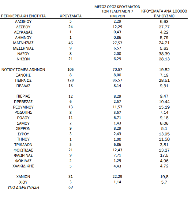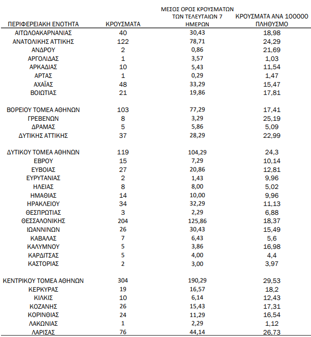 Η κατανομή των 1.902 νέων εγχώριων κρουσμάτων ανά Περιφερειακή Ενότητα: