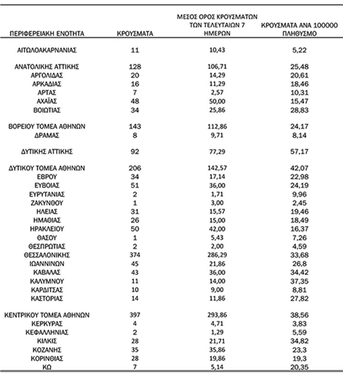 Η κατανομή των 2.753 νέων εγχώριων κρουσμάτων ανά Περιφερειακή Ενότητα: