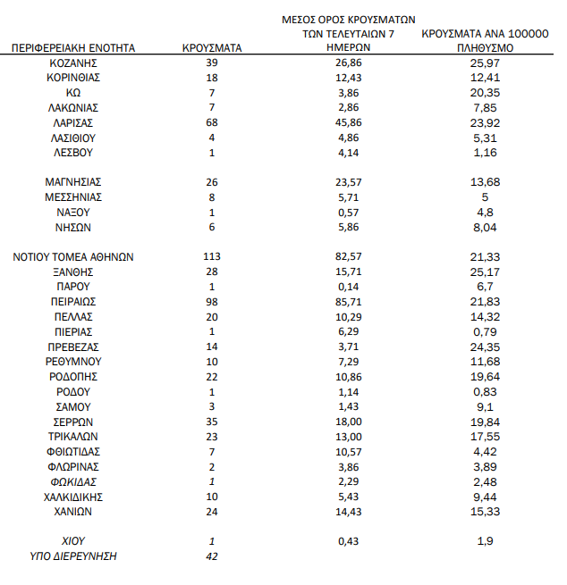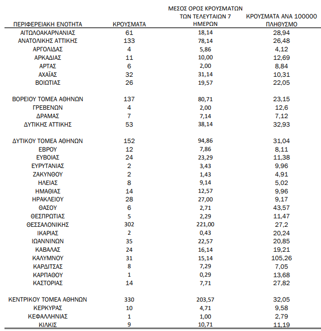 Η κατανομή των 2.135 νέων εγχώριων κρουσμάτων ανά Περιφερειακή Ενότητα: