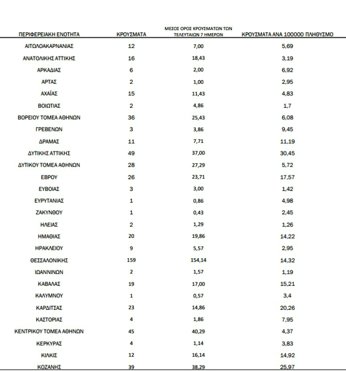 - Δυτική Αττική: 30,45 κρούσματα / 100.000 κατοίκους