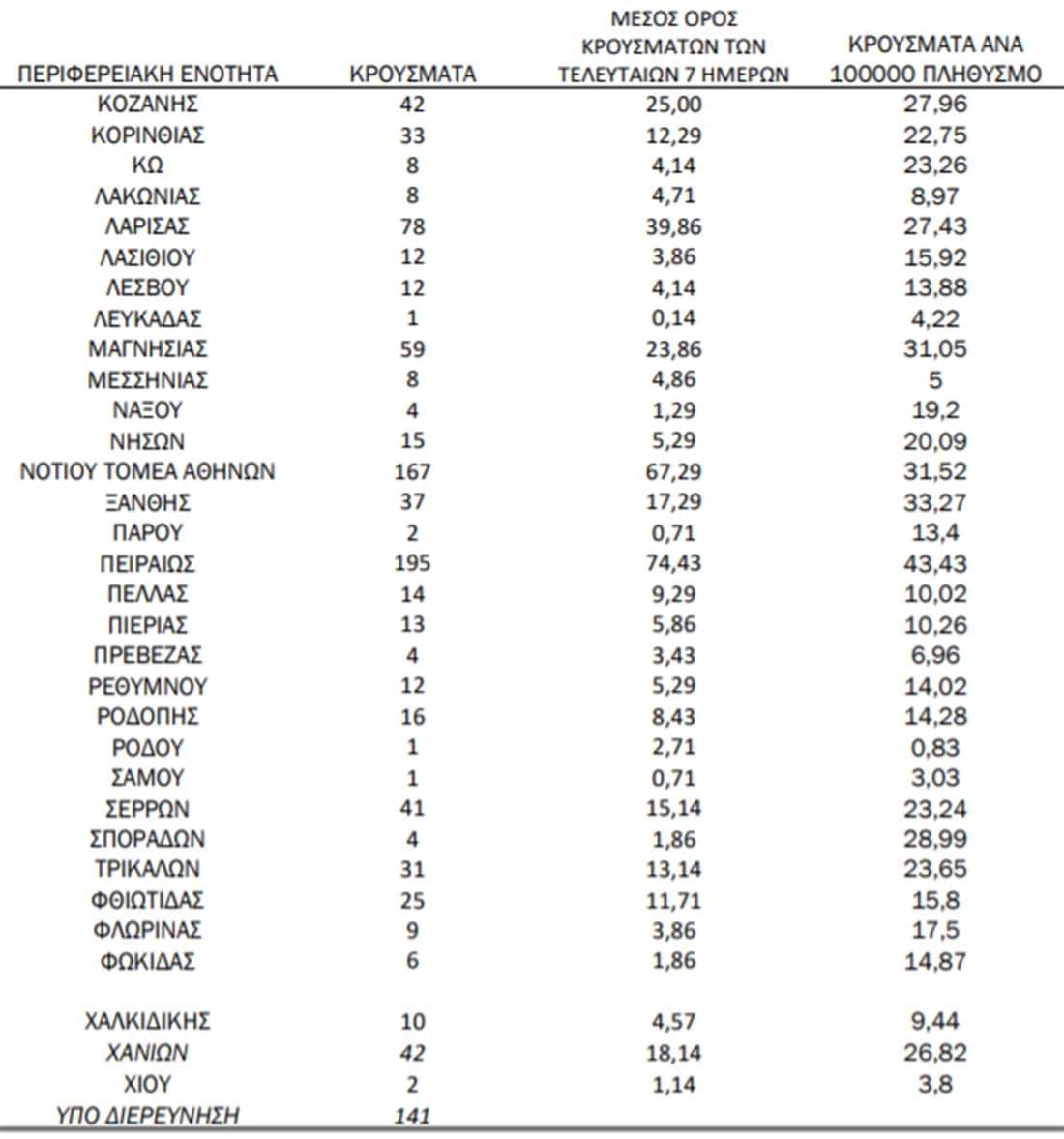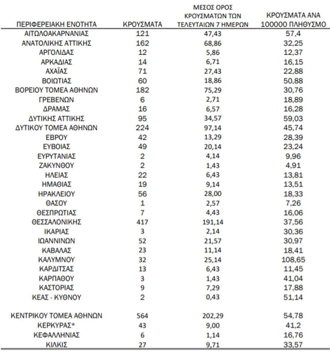 Η κατανομή των 3.410 νέων εγχώριων κρουσμάτων ανά Περιφερειακή Ενότητα: