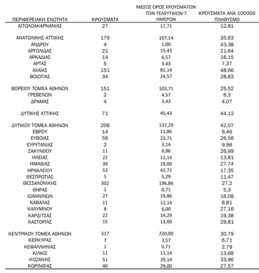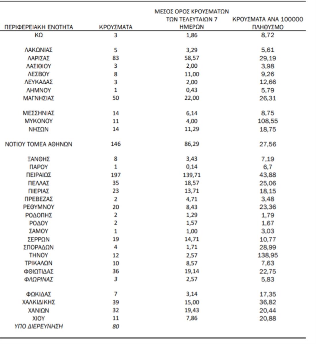 Αναλυτικά οι μολύνσεις ανά Περιφερειακή Ενότητα: