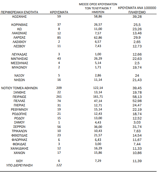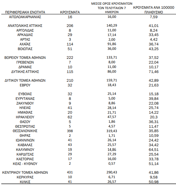 Η κατανομή των 3.433 νέων εγχώριων κρουσμάτων ανά Περιφερειακή Ενότητα: