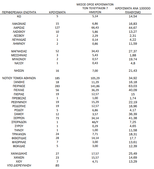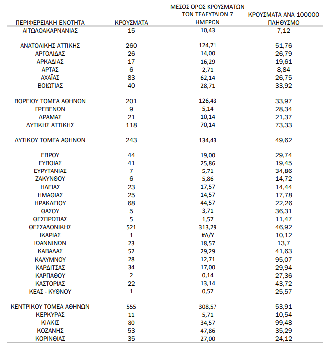 Η κατανομή των 3.816 νέων εγχώριων κρουσμάτων ανά Περιφερειακή Ενότητα: