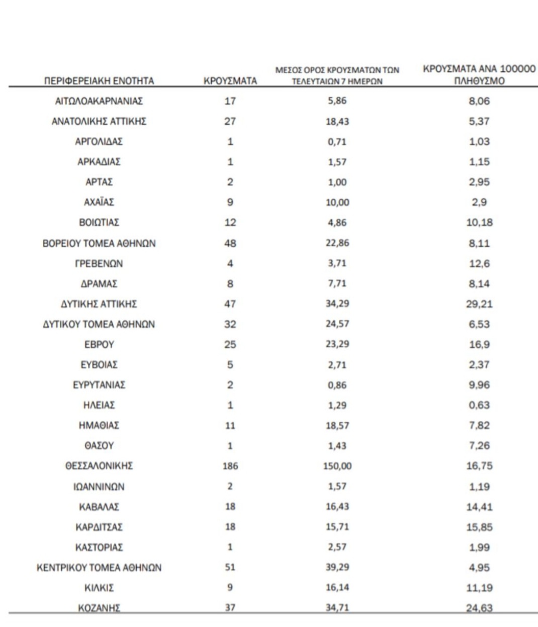 Στην Ανατολική Αττική εντοπίστηκαν 27 κρούσματα: