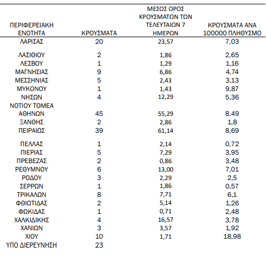 Αναλυτικά ο “χάρτης” με τα νέα, εγχώρια κρούσματα: