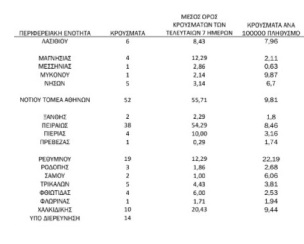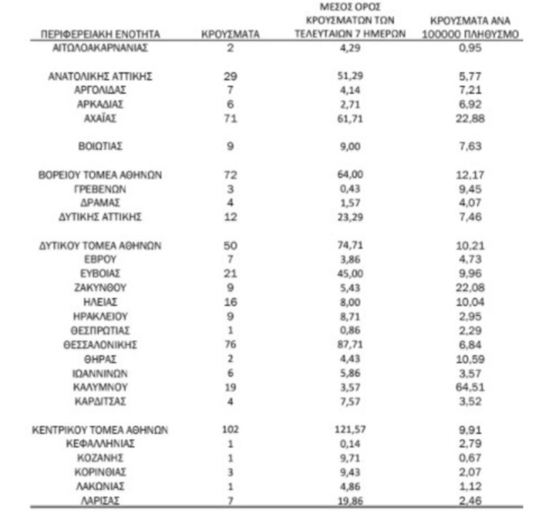 Αναλυτικά ο “χάρτης” με τα κρούσματα:
