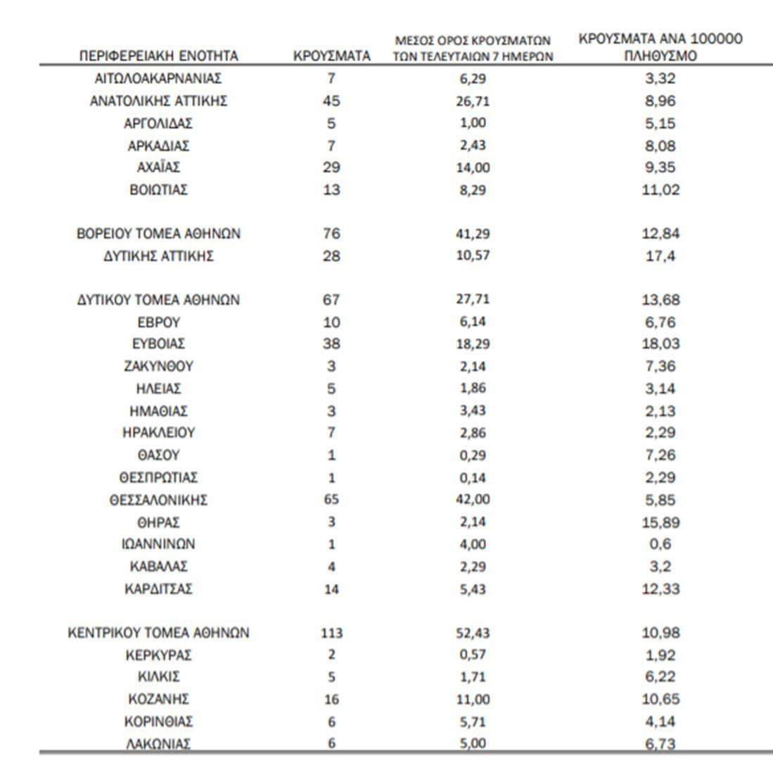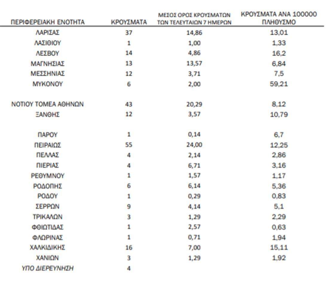 Η γεωγραφική κατανομή των κρουσμάτων στη χώρα μας: