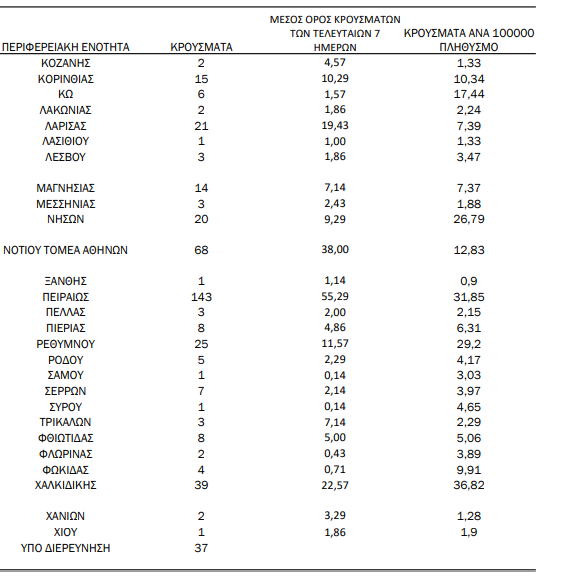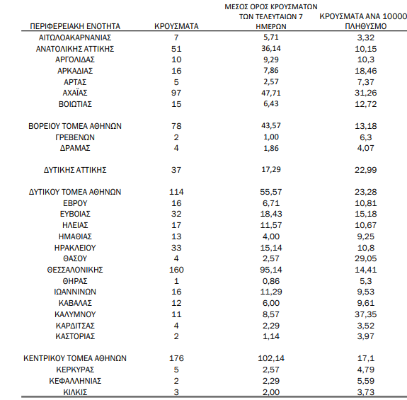 Αναλυτικά ο “χάρτης” με τα νέα, εγχώρια κρούσματα: