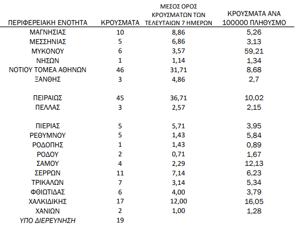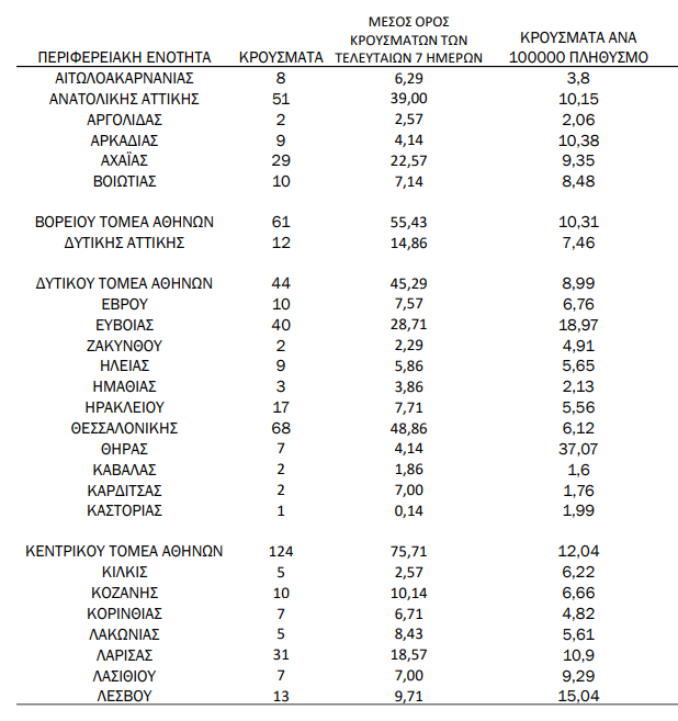 Η κατανομή των 787 νέων εγχώριων κρουσμάτων ανά Περιφερειακή Ενότητα παρουσιάζεται στον παρακάτω πίνακα: