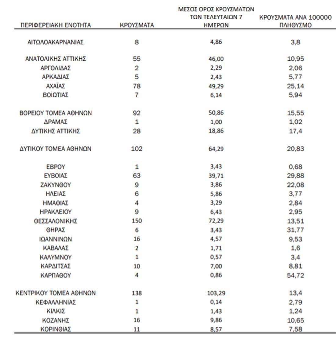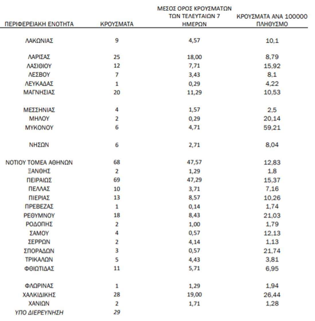 Στην Αττική εντοπίζονται, για ακόμα μία ημέρα τα περισσότερα κρούσματα, ενώ συγκεκριμένα στην Ανατολική Αττική οι νές μολύνσεις έφθασαν τις 55.