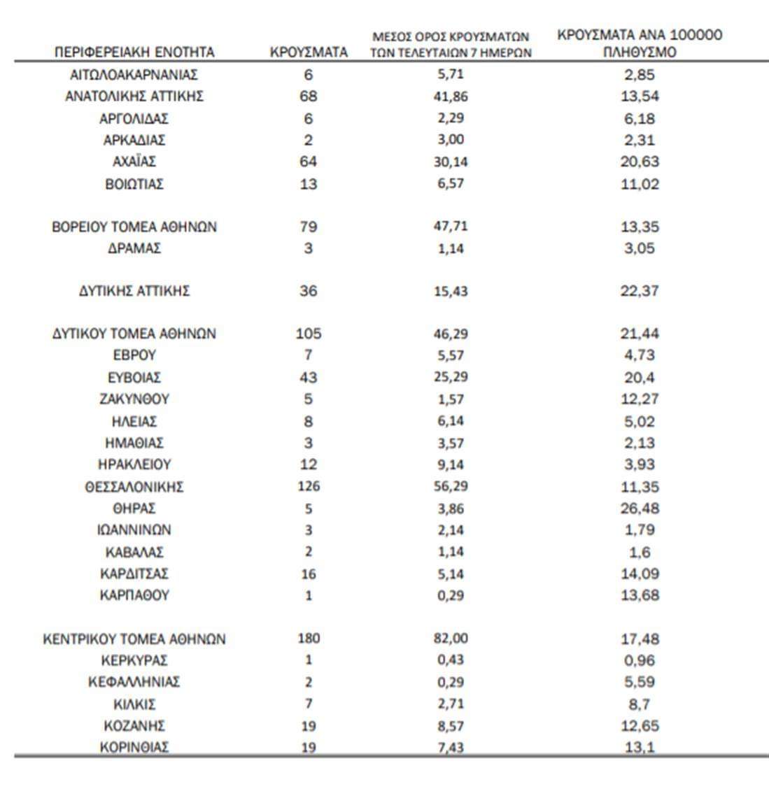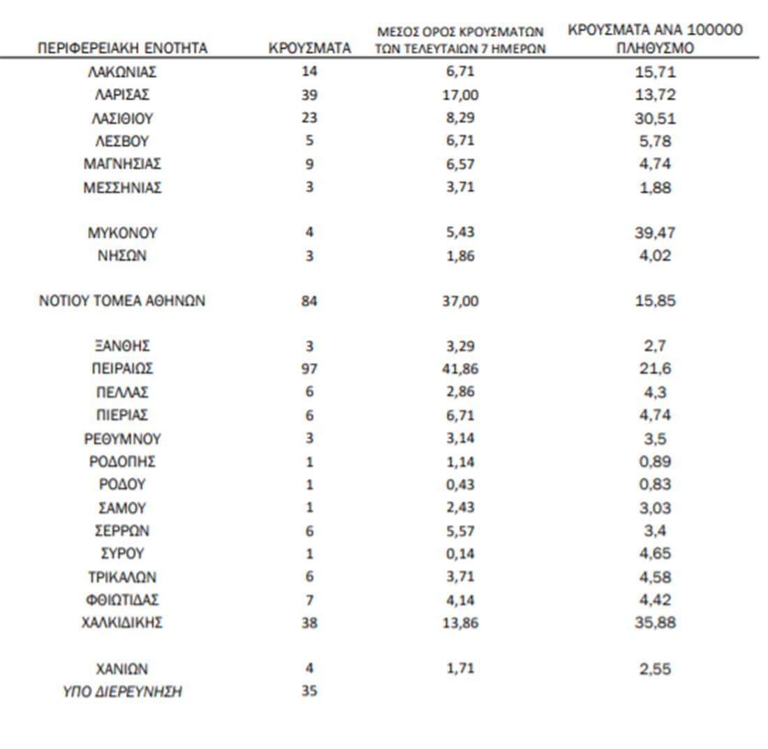 Αναλυτικά ο “χάρτης” των κρουσμάτων: