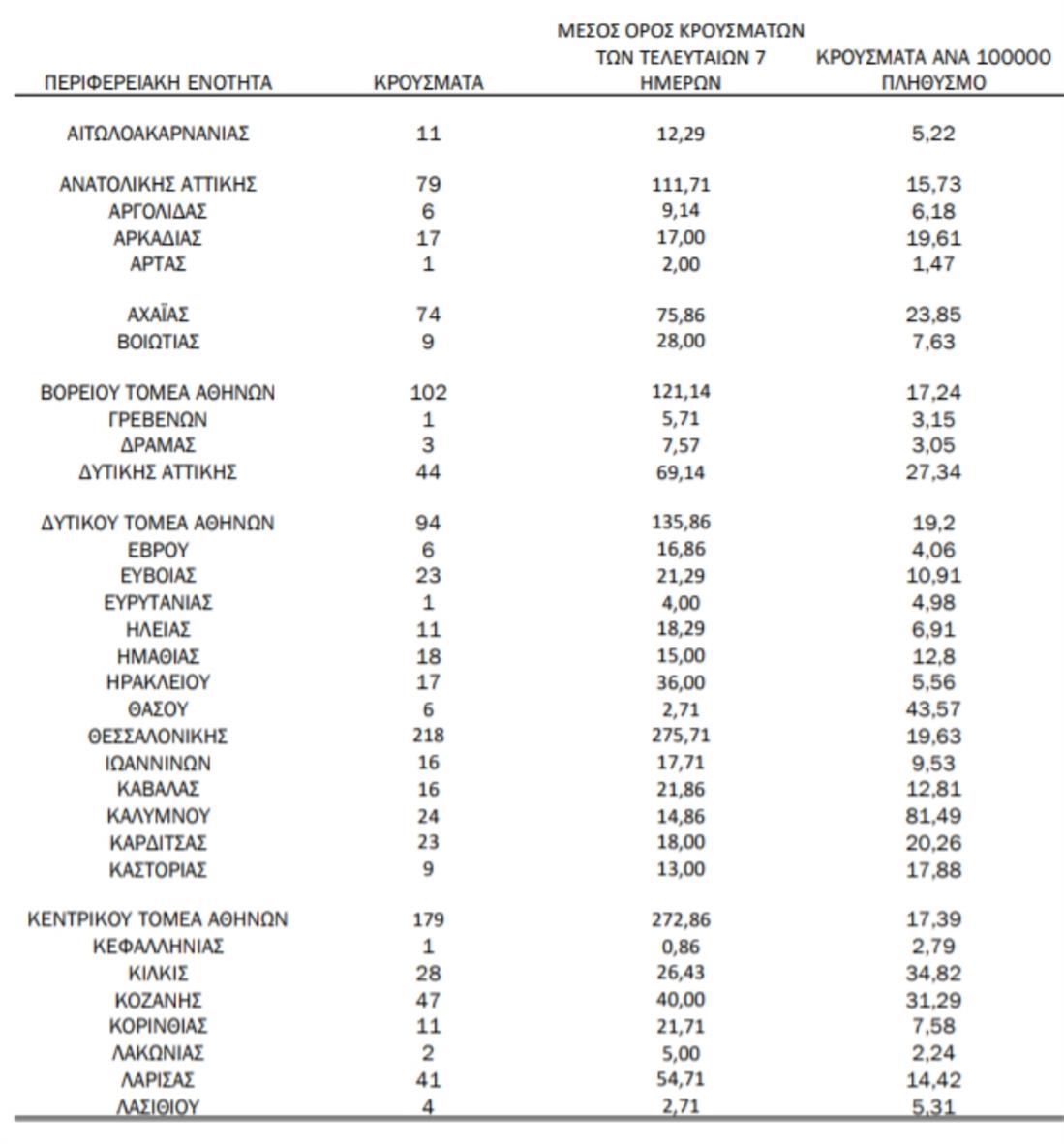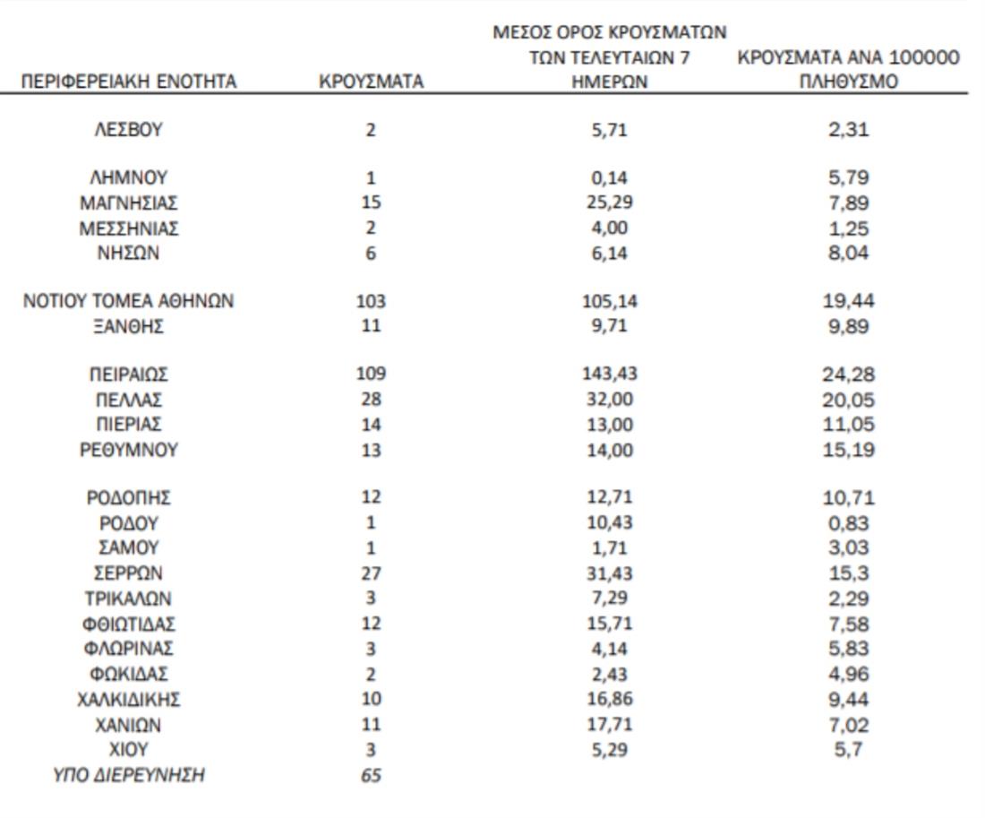 Η κατανομή των 1.596 νέων εγχώριων κρουσμάτων ανά Περιφερειακή Ενότητα: