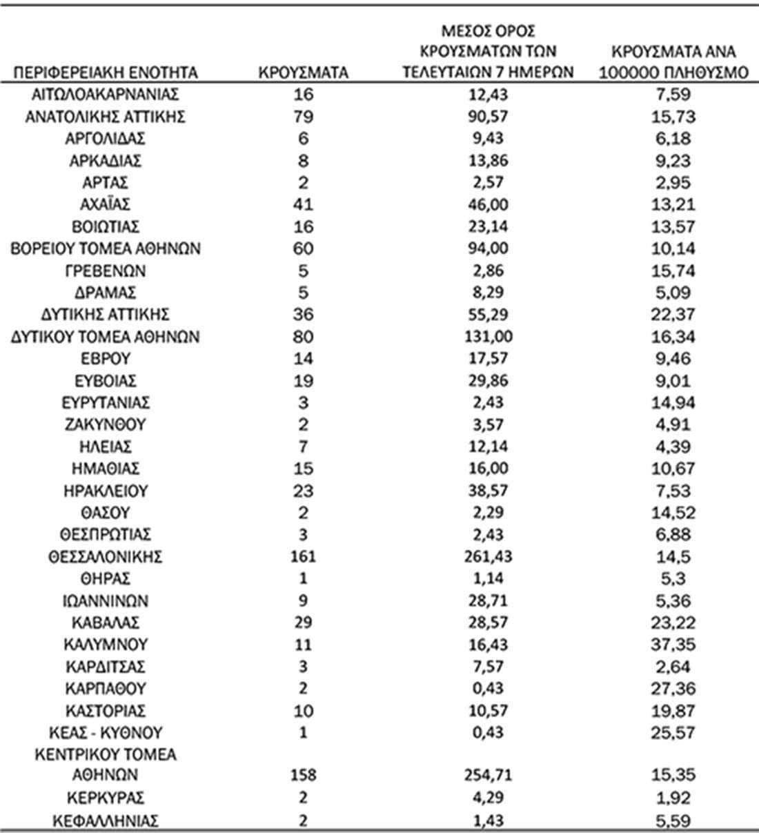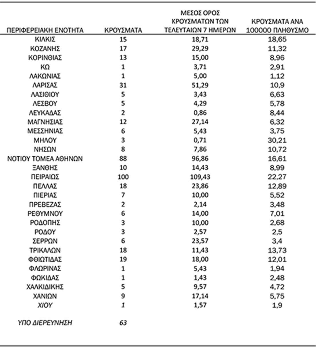 Αναλυτικά τα κρούσματα ανά περιοχή: