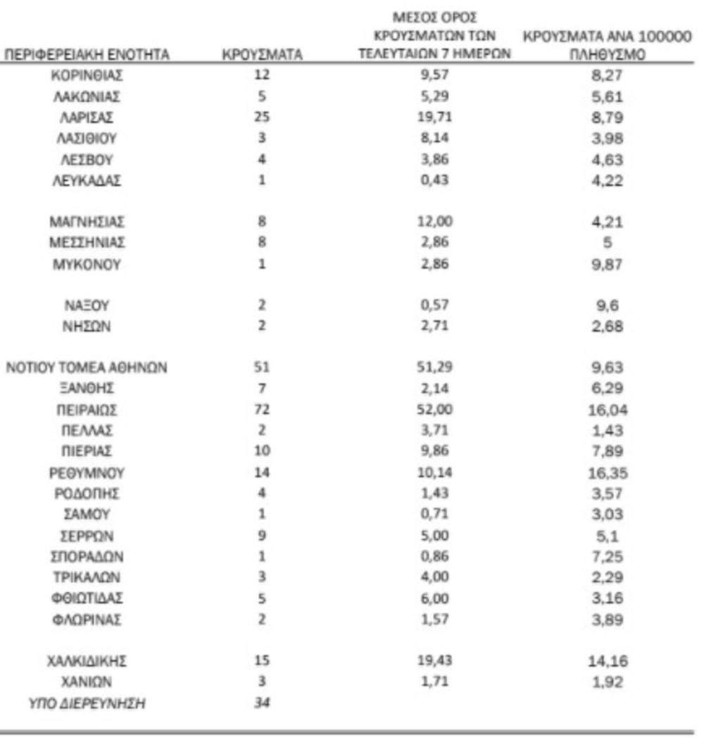 Αναλυτικά ο “χάρτης” με τα εγχώρια κρούσματα: