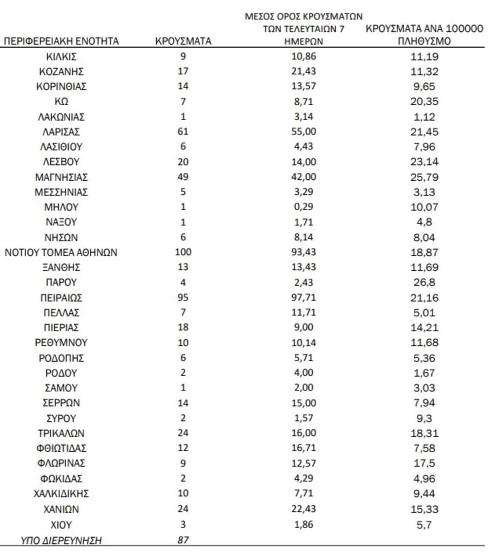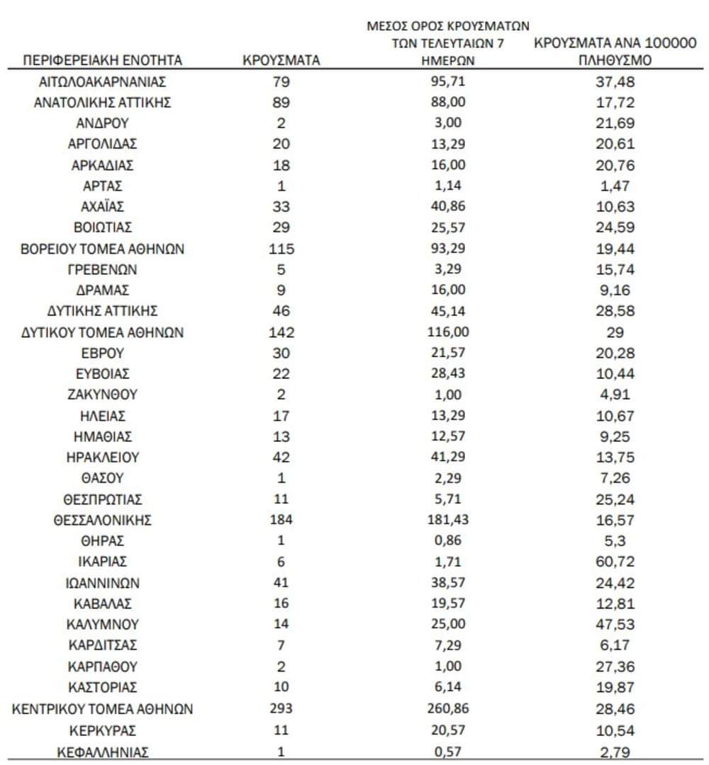 Αναλυτικά τα κρούσματα ανά περιοχή: