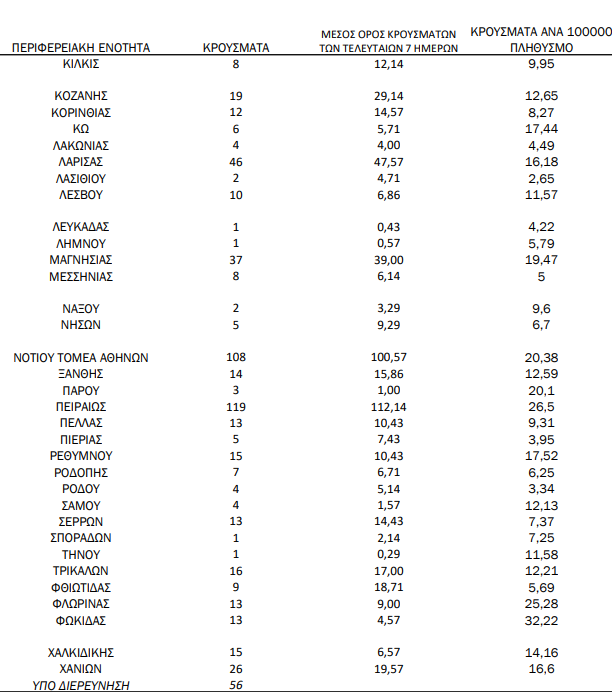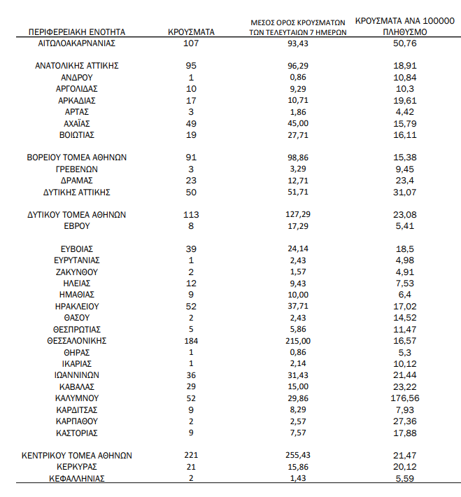 Η κατανομή των 1.894 νέων εγχώριων κρουσμάτων ανά Περιφερειακή Ενότητα: