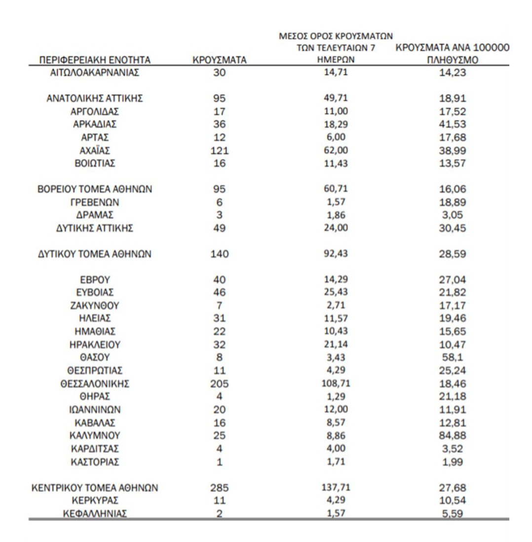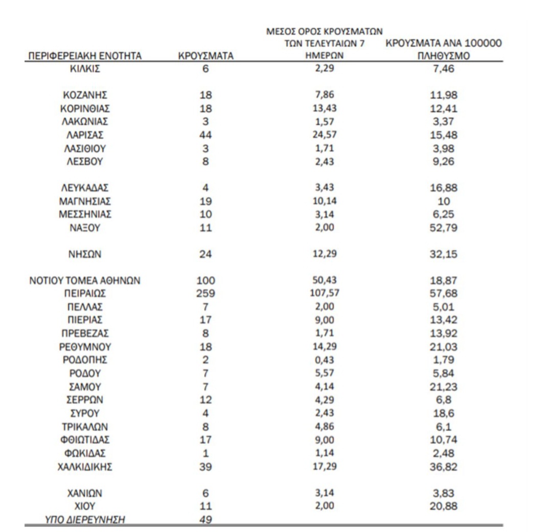 Αναλυτικά ο “χάρτης” με τα κρούσματα ανά περιοχή: