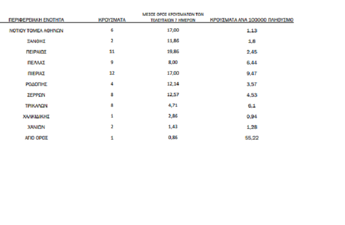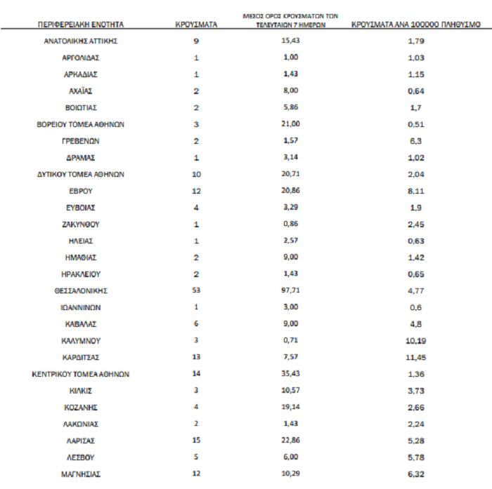Η κατανομή των 248 νέων εγχώριων κρουσμάτων ανά Περιφερειακή Ενότητα παρουσιάζεται στον κατωτέρω πίνακα: