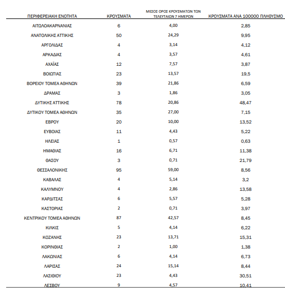 Τα νέα εργαστηριακά επιβεβαιωμένα κρούσματα του κορονοϊού στη χώρα μας είναι 816, εκ των οποίων 24 εντοπίστηκαν κατόπιν ελέγχων στις πύλες εισόδου της χώρας. Από το σύνολο των 816 νέων κρουσμάτων του νέου ιού στη χώρα 29 είναι εισαγόμενα.
