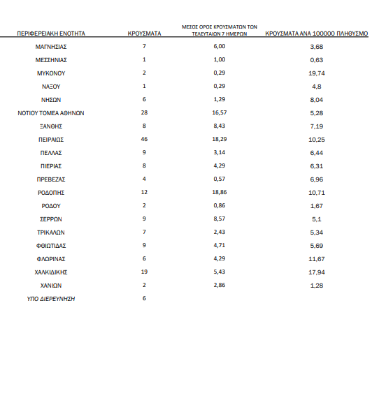 Ο ημερήσιος αριθμός και κρούσματα ανά 100.000 πληθυσμού επιβεβαιωμένων εγχώριων κρουσμάτων COVID-19 ανά περιφερειακή ενότητα στις 06 Ιανουαρίου 2021: