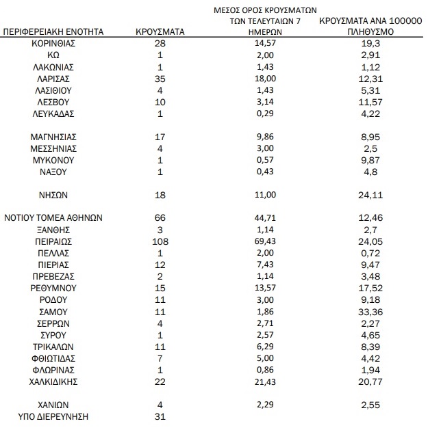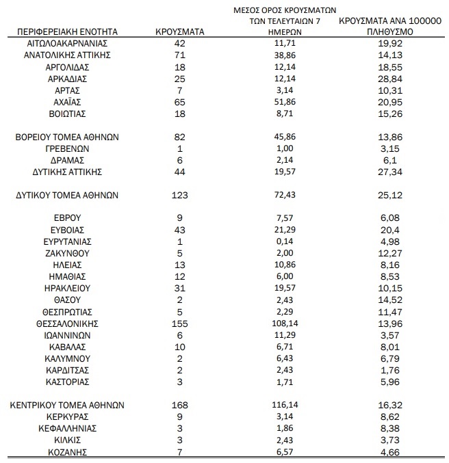 Αναλυτικά ο “χάρτης” με τα νέα, εγχώρια κρούσματα: