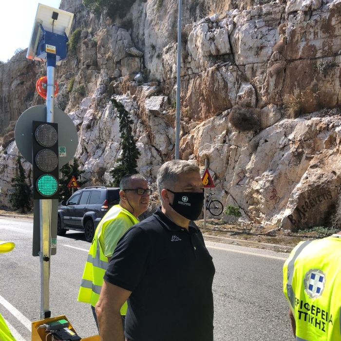 Ο Περιφερειάρχης Αττικής, Γιώργος Πατούλης, επισκέφθηκε το σημείο για να επιθεωρήσει τις εργασίες και να ενημερωθεί για την πορεία υλοποίησης του έργου. Όπως υπογράμμισε η επιλογή ενεργοποίησης του φωτεινού σηματοδότη προκρίθηκε σε συνεννόηση με την Τροχαία Αθηνών, καθώς κρίθηκε ότι επιτυγχάνει το υψηλότερο επίπεδο οδικής ασφάλειας για τους χρήστες της οδού με τη μικρότερη δυνατή όχληση.