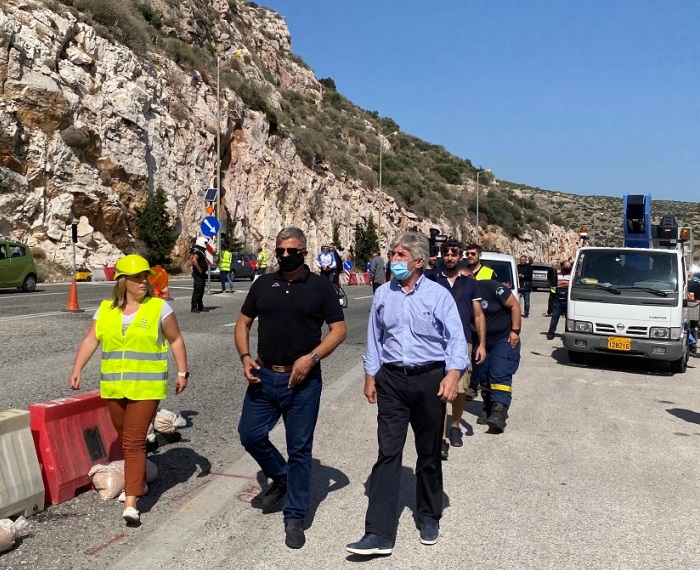 Τον Περιφερειάρχη Αττικής συνόδευαν μεταξύ άλλων στο σημείο επιθεώρησης ο Δήμαρχος Κρωπίας Δημήτρης Κιούσης, αξιωματούχοι της Τροχαίας και της Ελληνικής Αστυνομίας.