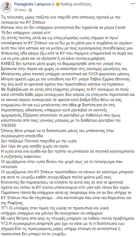 Ανάρτηση για το ίδιο θέμα έκανε και ο Δημοτικός Σύμβουλος Παναγιώτης Λάμπρου: