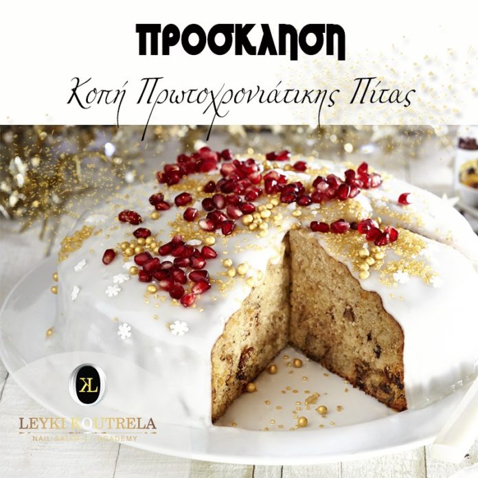 Η Λευκή Κουτρέλα & η ομάδα της σας προσκαλούν στην Κοπή της Πρωτοχρονιάτικης πίτας, την Παρασκευή 31/1 στο κατάστημα Leuki Koutrela Nail Salon & Academy στη Λ.Βραυρώνος και Ζωοδόχου Πηγής στην Αρτέμιδα.
