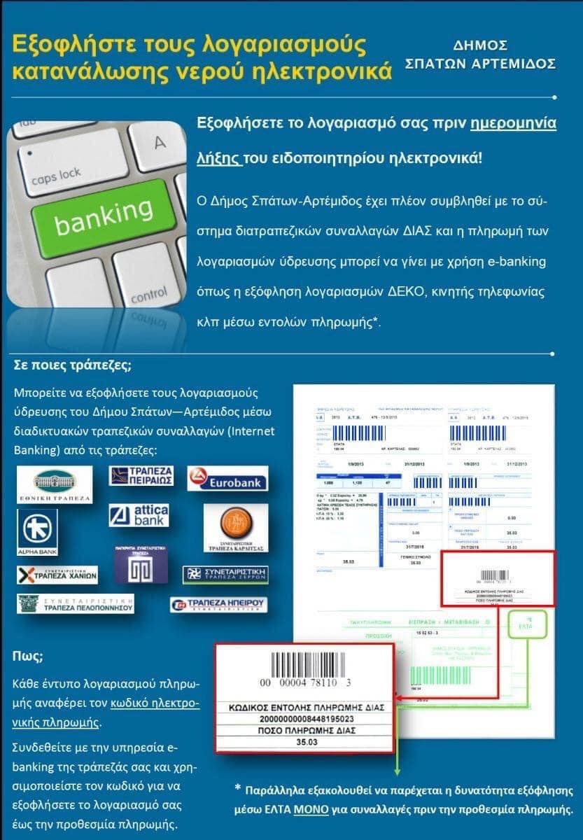Εναλλακτικά μπορούν να εξοφλούν οι οφειλέτες τους λογαριασμούς ηλεκτρονικά μέσω της υπηρεσίας διαδικτυακών τραπεζικών συναλλαγών.
