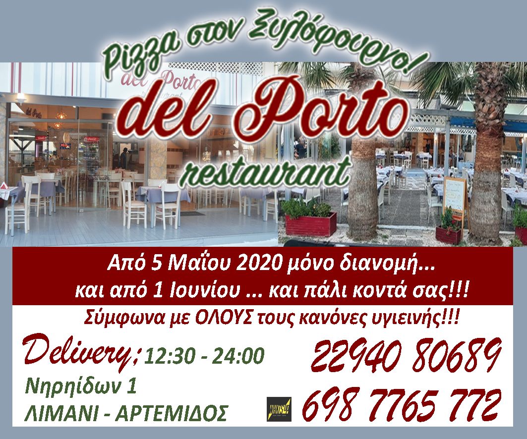 Η Pizza del Porto στην Αρτέμιδα, ακολουθώντας πιστά τα μέτρα για τη μη εξάπλωση του κορονοϊού και διατηρώντας την υπευθυνότητά της απέναντι στους πελάτες της, κλείνει τις πόρτες της για το κοινό, αλλά συνεχίζει να παραδίδει στο σπίτι τις γεύσεις που αγαπάτε!