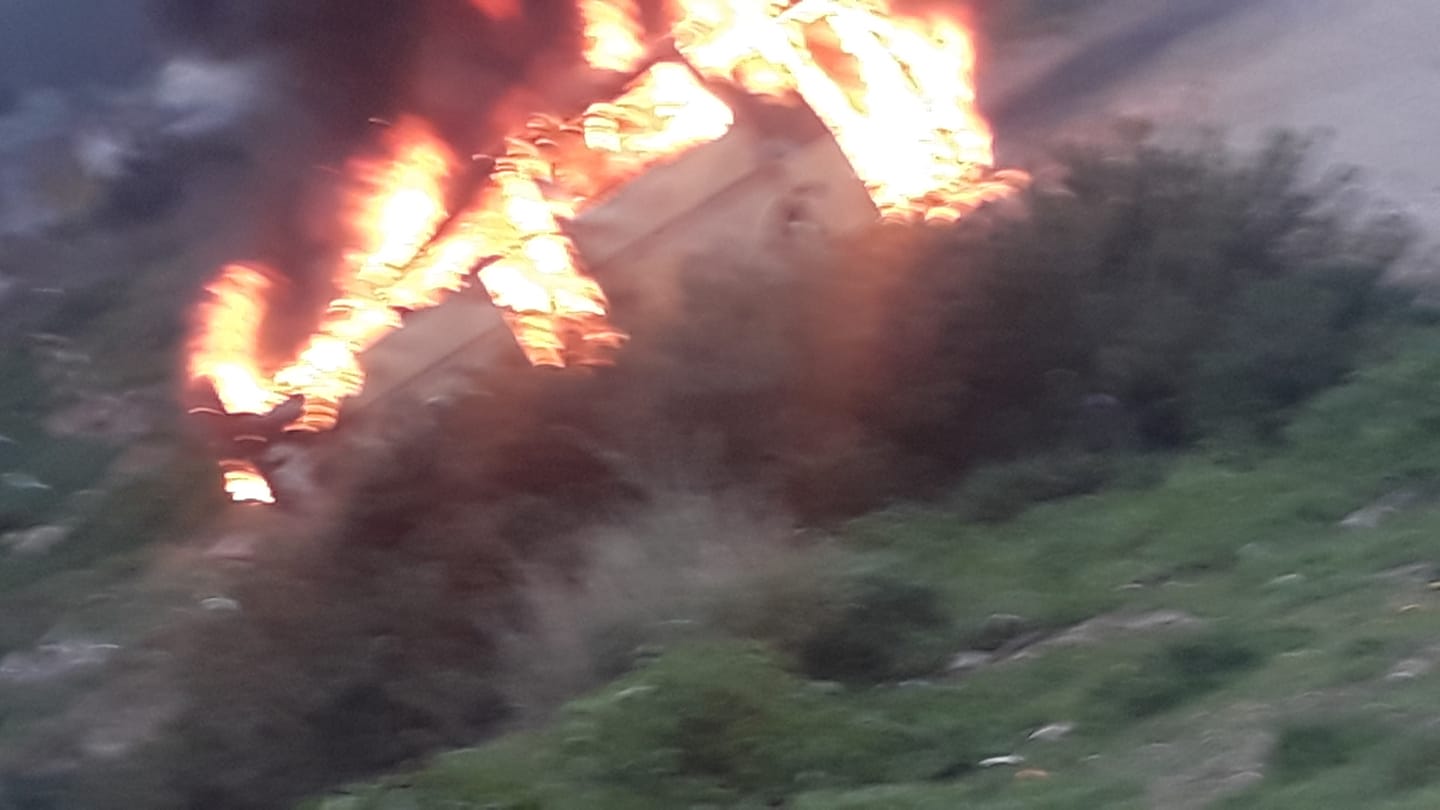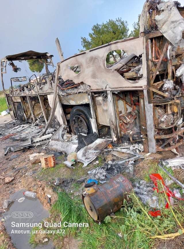 Το σχολικό πούλμαν καταστράφηκε ολοσχερώς αλλά ευτυχώς δεν υπήρξαν τραυματισμοί.