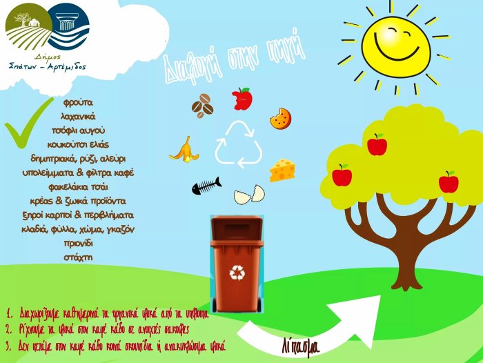 Ξεκινάμε πιλοτικά με την τοποθέτηση σε σημεία κοντά σε χώρους εστίασης, και τους επόμενους μήνες και στις γειτονιές και ζητάμε τη συνδρομή των κατοίκων και των επιχειρηματιών για να αποδείξουμε ότι το πρόγραμμα μπορεί να λειτουργήσει στα Σπάτα και την Αρτέμιδα, ότι μπορούμε να κάνουμε το επόμενο βήμα για να διαμορφώσουμε ένα φιλικότερο περιβάλλον για την δική μας αλλά και τις νέες γενιές.