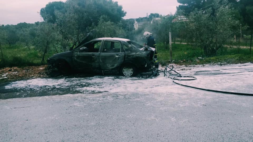 Αυτοκίνητο τυλίχθηκε στις φλόγες, από άγνωστη ακόμα αιτία, ενώ εκινείτο επί της Αρίωνος, στην περιοχή Βένια.