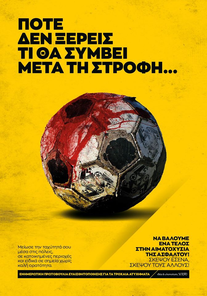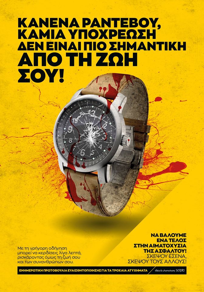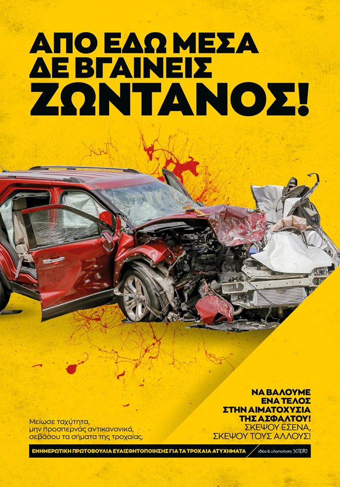 Γροθιά στο στομάχι αποτελούν οι αφίσες που δημιούργησε το διαφημιστικό γραφείο Scripta στα Χανιά, θέλοντας να ευαισθητοποιήσει τον κόσμο για την ασφαλή οδήγηση και τις συνέπειες της ταχύτητας και της απροσεξίας στους δρόμους.