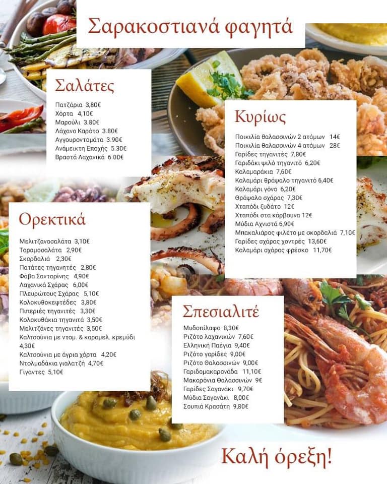 Στον πλούσιο κατάλογο με τα σαρακοστιανά θα βρείτε φρέσκες σαλάτες, απολαυστικά ορεκτικά, μοναδικά κυρίως πιάτα και σπεσιαλιτέ που δεν θα βρείτε πουθενά αλλού!